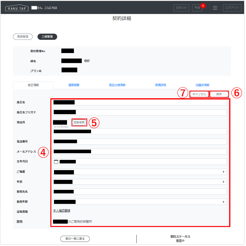 - ※意見の項目は契約申込時に施主が書き込んだ内容が反映されます。