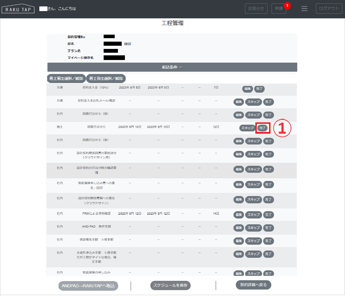 - ※「スケジュールを保存」ボタンをクリックしなければ施主側にてスケジュール登録が出来ません。